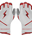 POIGNETS À DOUBLE INVERSION EXCLUSIFS QUI FAVORISENT SUPPORT ET PUISSANCE : Plus de gants à long poignet sont vendus maintenant. C'est parce que le design de Bruce Bolt procure le meilleur support de l'industrie. La stabilisation que procure le poignet au dos de la main et son enveloppe élastique robuste ajoute support et puissance. Ce design procure une protection contre les blessures gênantes aux poignets tout en permettant un élan plus puissant et un support inégalé au contact. C'est un gant de frappeur complètement différent.