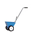 Trémie en acier peint en bleu, sans couvercle. 2 roues en caoutchouc et un essieu en acier de 1/2" facilitent la maniabilité. Le système d'alimentation brasse continuellement le matériau pour un écoulement régulier.
