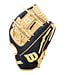 FermerGant Wilson A2000® DP15SS 11,5” avec ajustement Pedroia Fit, SuperSkin™ léger et poche peu profonde H-Web. Noir et Blonde, idéal pour joueurs d’avant-champ recherchant rapidité et contrôle. Lire plus..