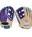 Featuring a camel and purple leather that offers a matching purple stitching and shiny, purple foil stamp. Its mint laces and welting take this glove to another level, making it sure to stand out when on the field.
