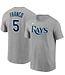 Before Wander Franco and the Tampa Bay Rays step on the field for the next game, gear up in this Name and Number T-shirt from Nike. Its lightweight cotton fabric is breathable and comfortable, perfect for the midsummer heat of baseball season. Both the front and back are decked out in detailed graphics that will highlight your admiration of one of the game's best.