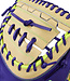 The palm is crafted from Blonde Pro Stock® Leather, delivering rugged durability, lasting comfort, and a professional-level feel, while the Purple Pro Stock® leather back adds structure and standout style. A Hinged Half Moon Web helps secure the ball and speed up the transfer. The Drawstring Wrist Closure allows easy, personalized fit adjustments.
