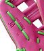 Built with Flamingo Pink Pro Stock® Leather, the palm delivers rugged durability and an unmatched feel, trusted by elite players. The Dual Post Web funnels the ball cleanly into a deep pocket, helping secure catches and control hot-hit balls. Across the back, Flamingo Pink and Neon Green SuperSkin™ panels reduce overall weight while offering moisture resistance and enhanced durability, keeping the glove ready for every play.